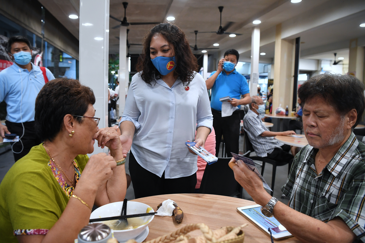 A photo taken on July 1, 2020 shows Ms Raeesah Khan during a walkabout at Block 308 Anchorvale Road.