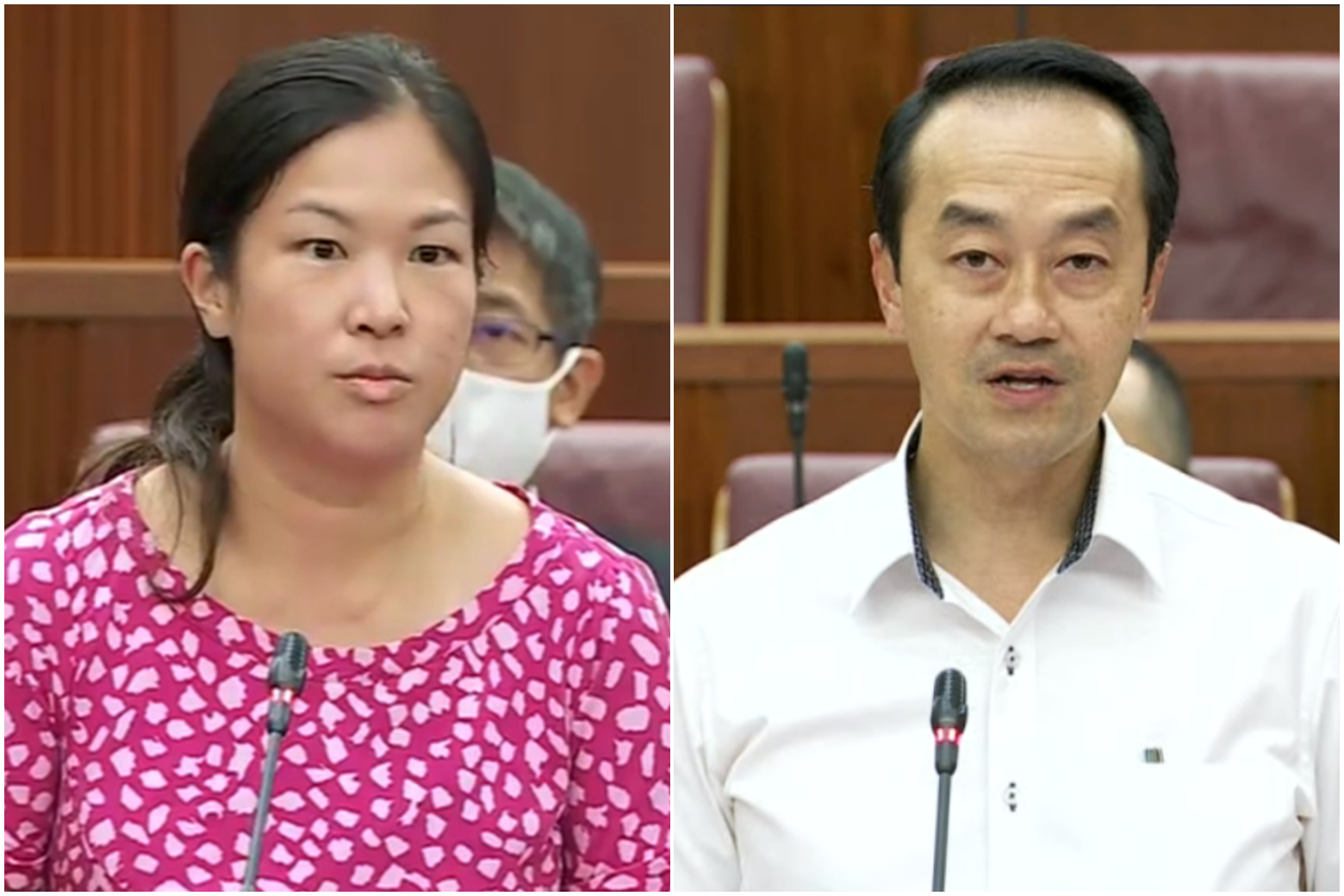 Workers' Party MP He Ting Ru (left) and Senior Minister of State for Manpower Koh Poh Koon in Parliament on July 4, 2022.