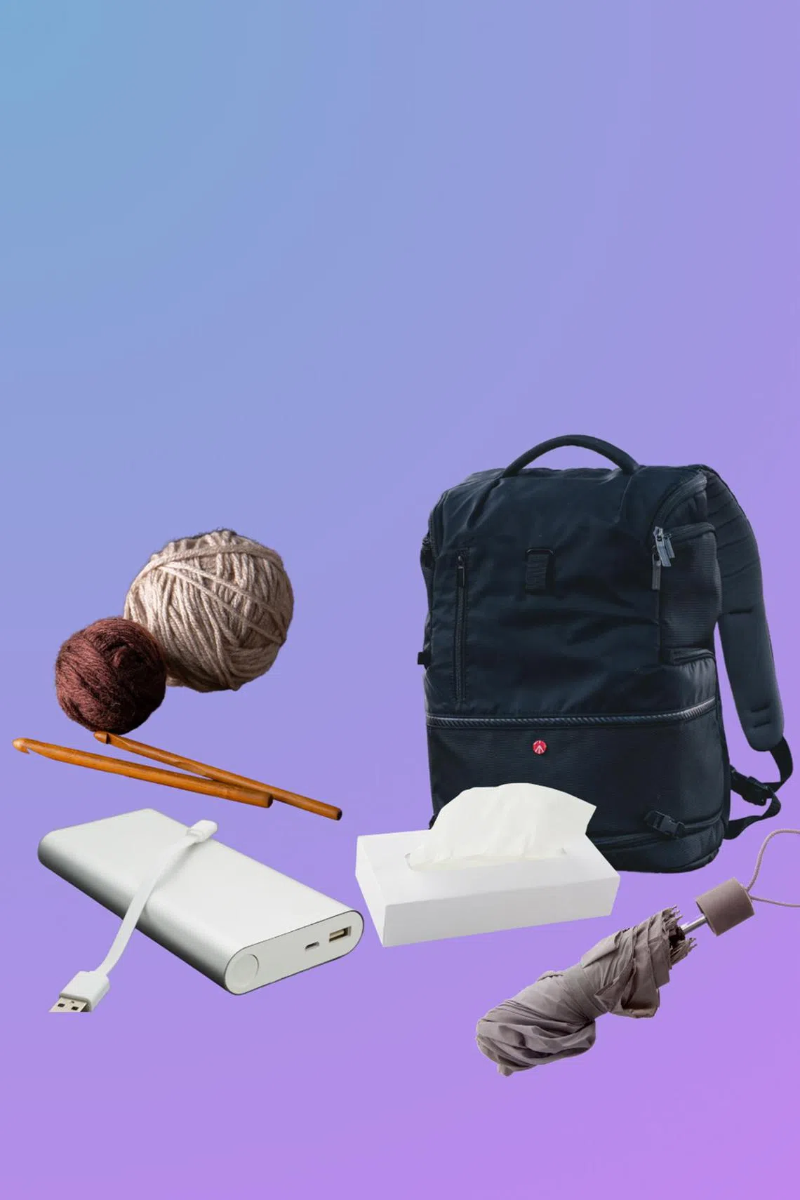 “I have an umbrella as I don’t want to be caught out by the rain, and two portable chargers in case my devices run out of battery.