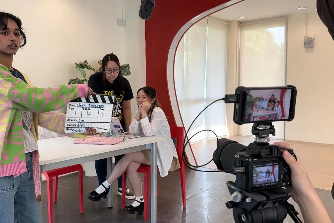 Singapore Polytechnic student Syasya Amalia Jamali at the shoot for an in-class group assignment during a video production module in 2023.