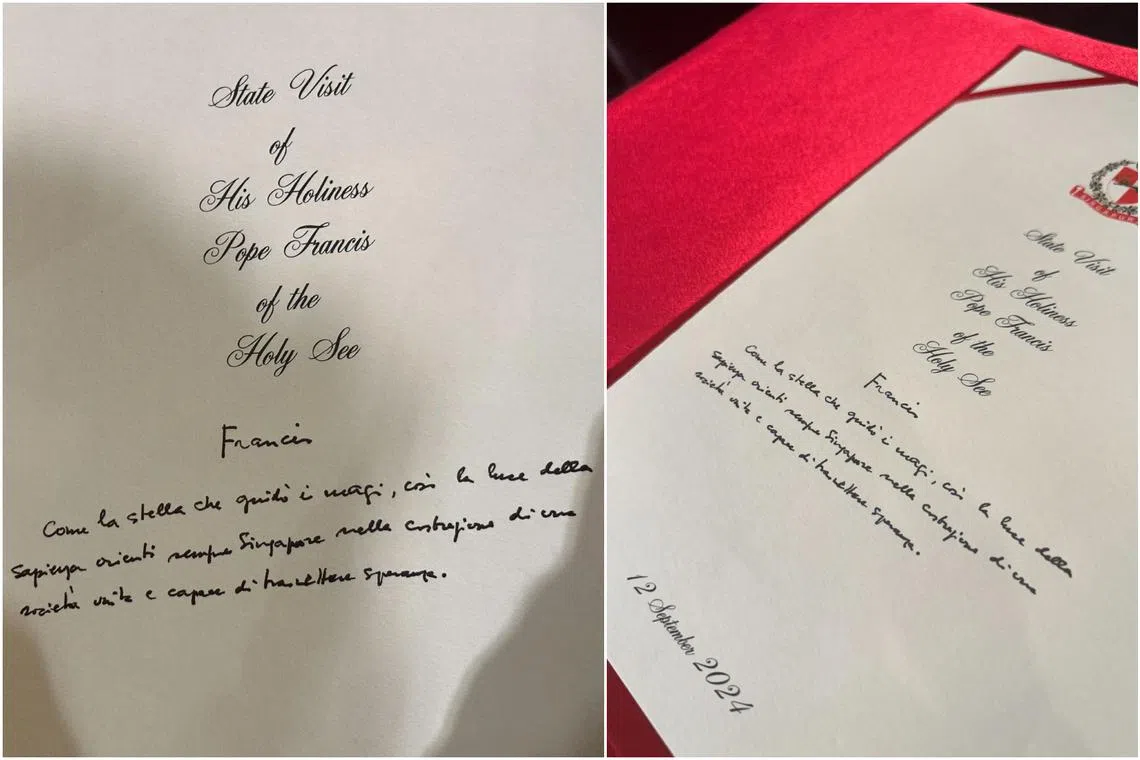 The Pope’s message translates to “Like the star that guided the Magi, so let the light of wisdom always guide Singapore in building a united society capable of conveying hope.”