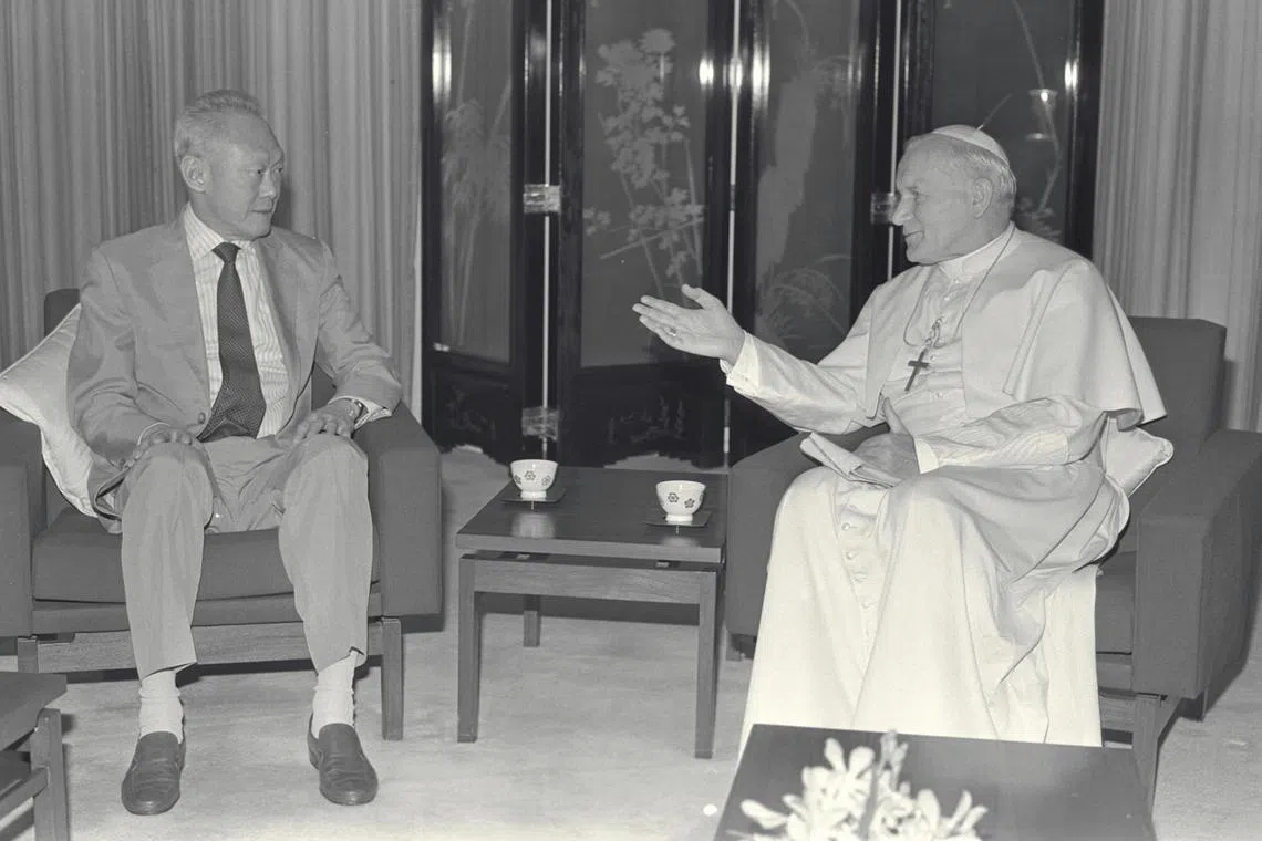 Pope John Paul II calling on then Prime Minister Lee Kuan Yew at the Istana in 1986.