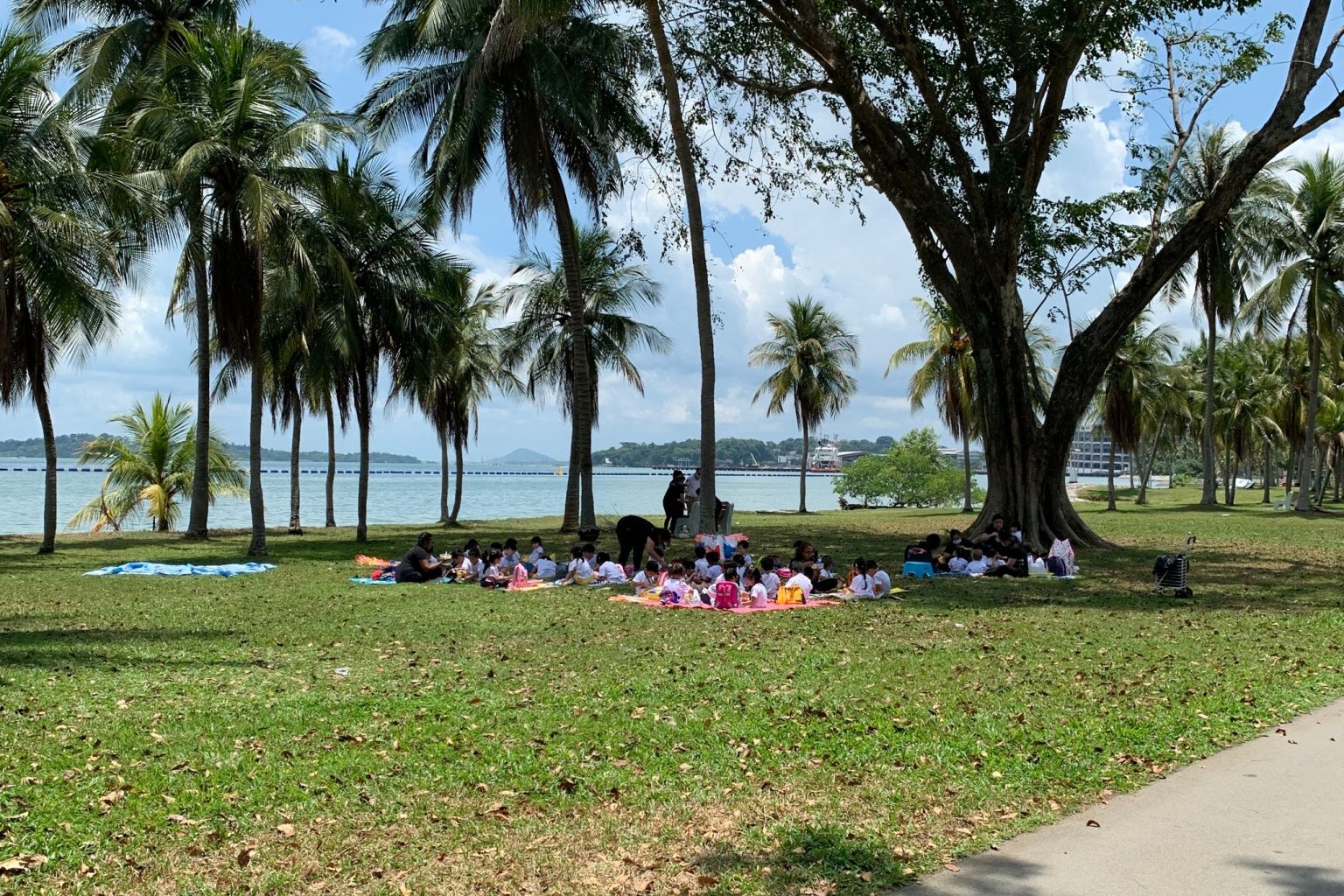 A group that appeared to consist of more than 40 teachers and children having a picnic in Pasir Ris Park on March 18, 2021.