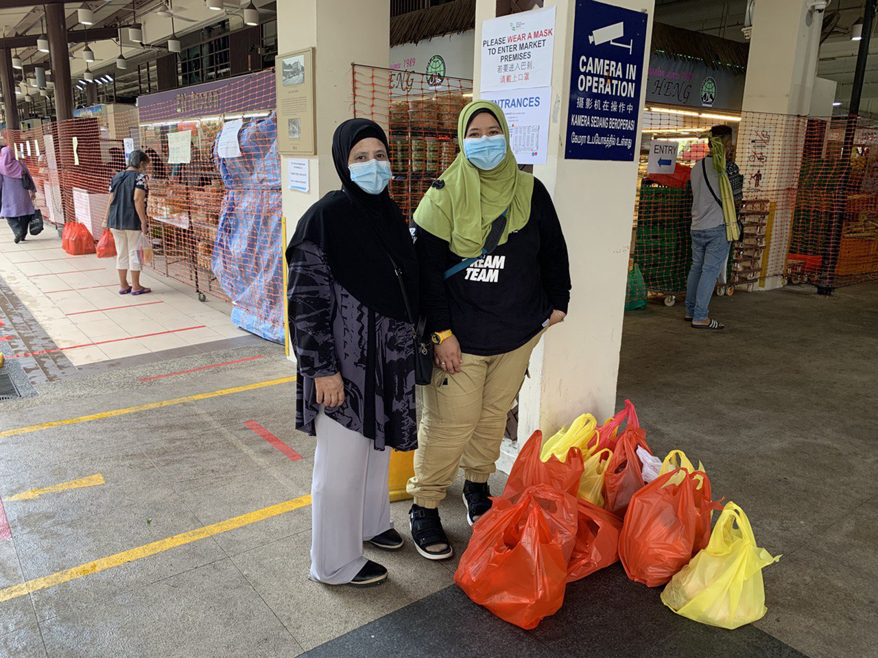 Madam Saodah Mohamad (left) and her daughter Ms Nashra Nasir did their Hari Raya festive shopping at Geylang Serai market on May 17, 2020.