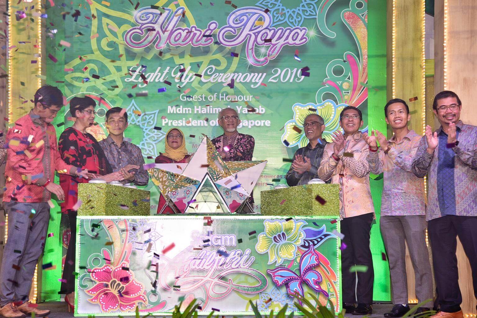 President Halimah Yacob (centre left) at the Hari Raya light up ceremony on May 3, 2019.