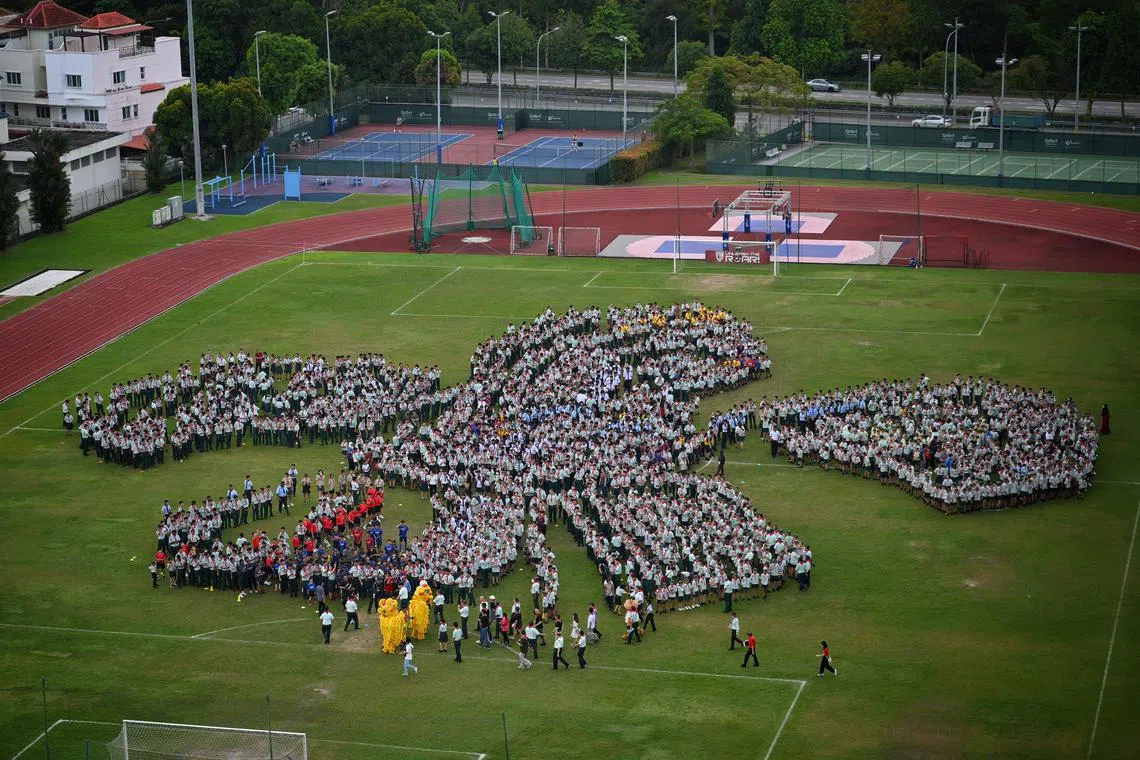 SINGAPORE – A total of 2,902 scouts from the Singapore Scout Association (SSA) gathered at Choa Chu Kang Stadium on March 2 to make a human formation of the scout emblem, or fleur-de-lis.