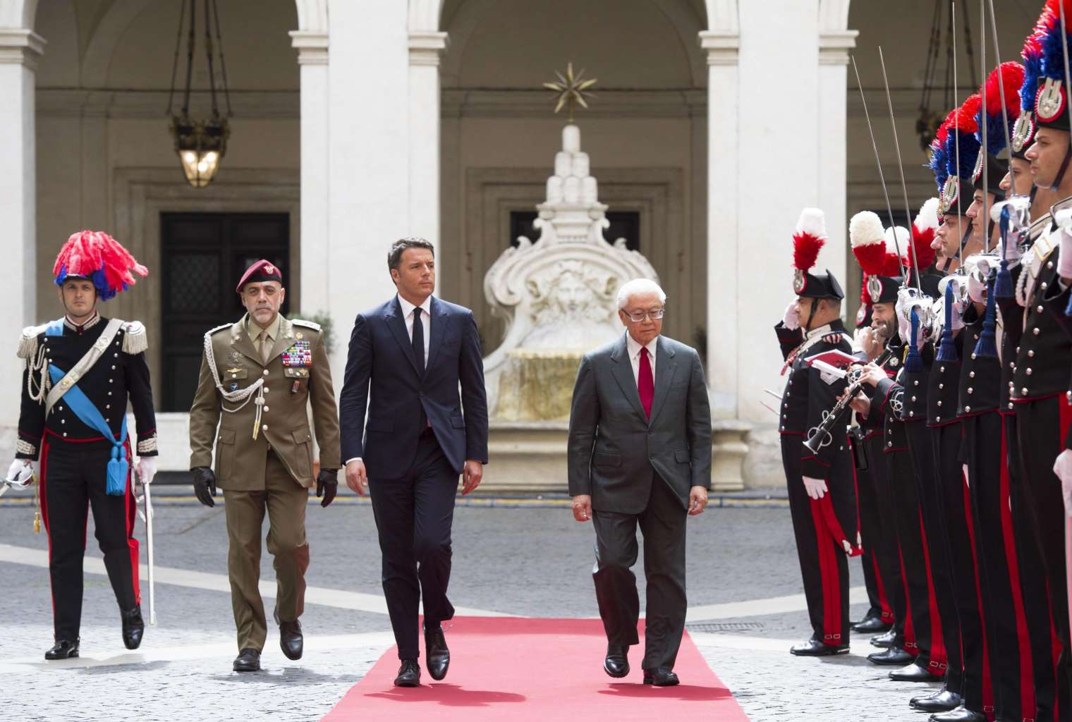 Italian Prime Minister Matteo Renzi welcoming the Singapore's President Tony Tan Keng Yam, in Rome, Italy, on May 23, 2016.