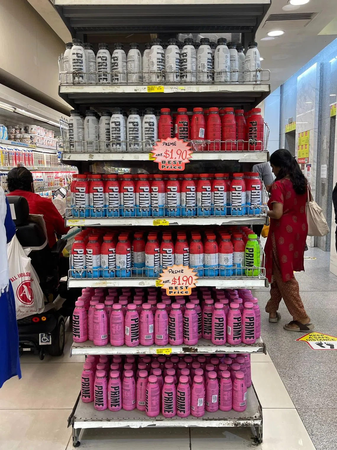 At Mustafa Centre, videos in November 2023 showed a variety of Prime Hydration’s 500ml bottles selling at $7.90. Fast forward to July, these bottled drinks are being sold at $1.90, while 330ml canned Energy drinks carry a price tag of $2.90. ST understands that the slashed prices are due to an ongoing promotion, with the price of a 500ml bottled Hydration drink originally going for $5.90.