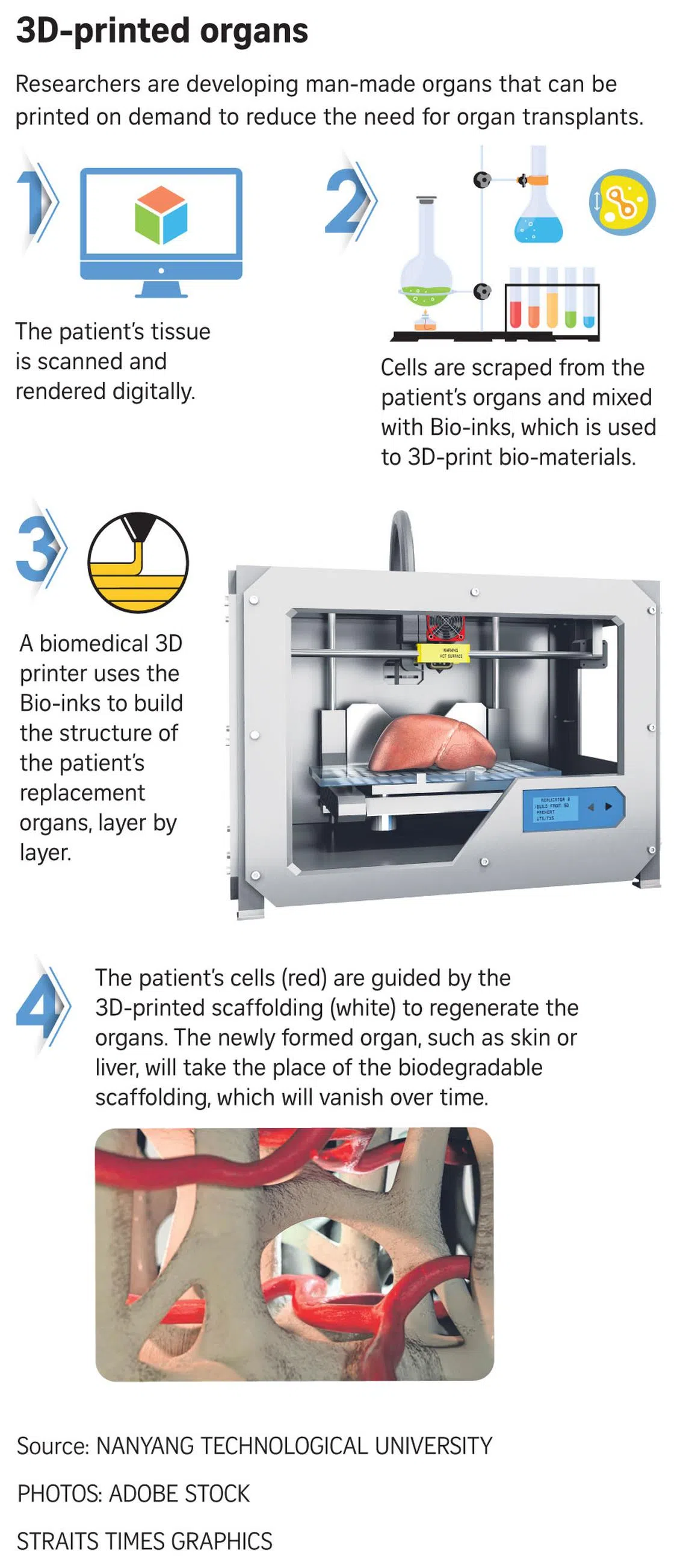 SINGAPORE – The days of human organ transplants may be numbered, as researchers are in pursuit of man-made tissue that can be printed on demand.