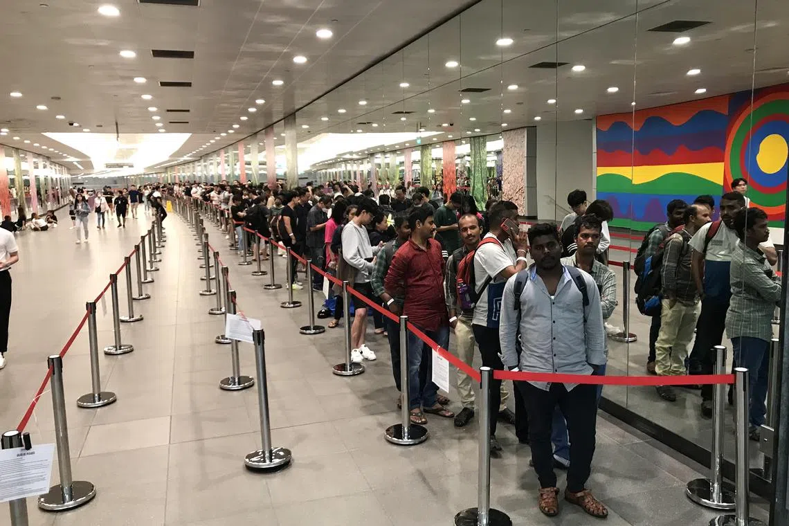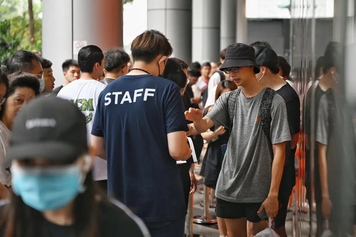 At 9am, when The Straits Times visited the mall, there were more than 200 people in line, with an estimated eight security officers overseeing the situation.