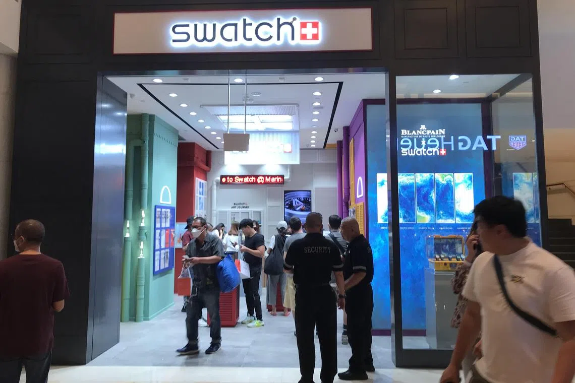 Watch buyers at The Shoppes – Marina Bay Sands were asked to queue in the public corridor of Bayfront MRT station, near where the Swatch boutique is located.