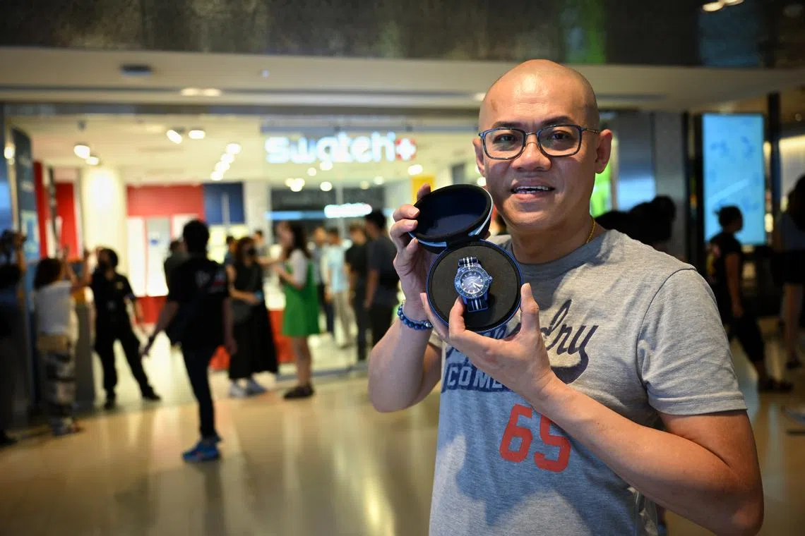 Mr Tan, who is retired, is a watch enthusiast with a collection of nearly 100 watches. He said he was drawn to join the queue because of “the hype”, and plans to give his Scuba Fifty Fathoms watch away as a present.