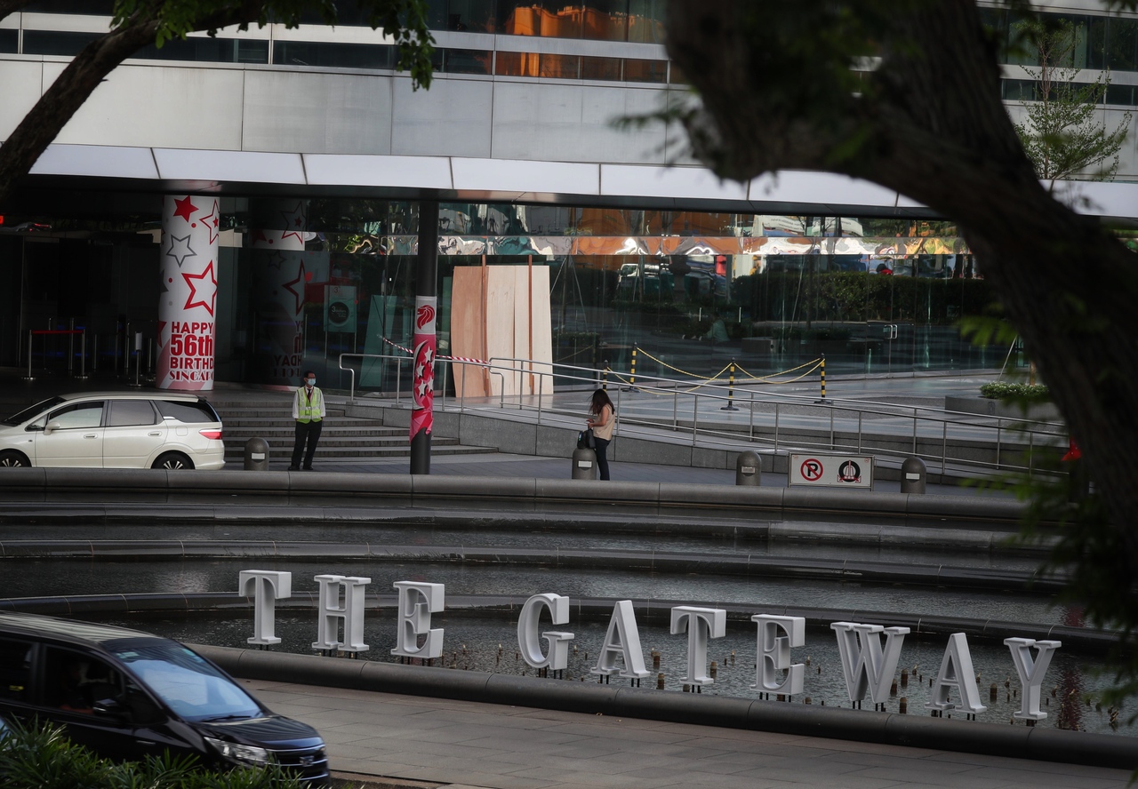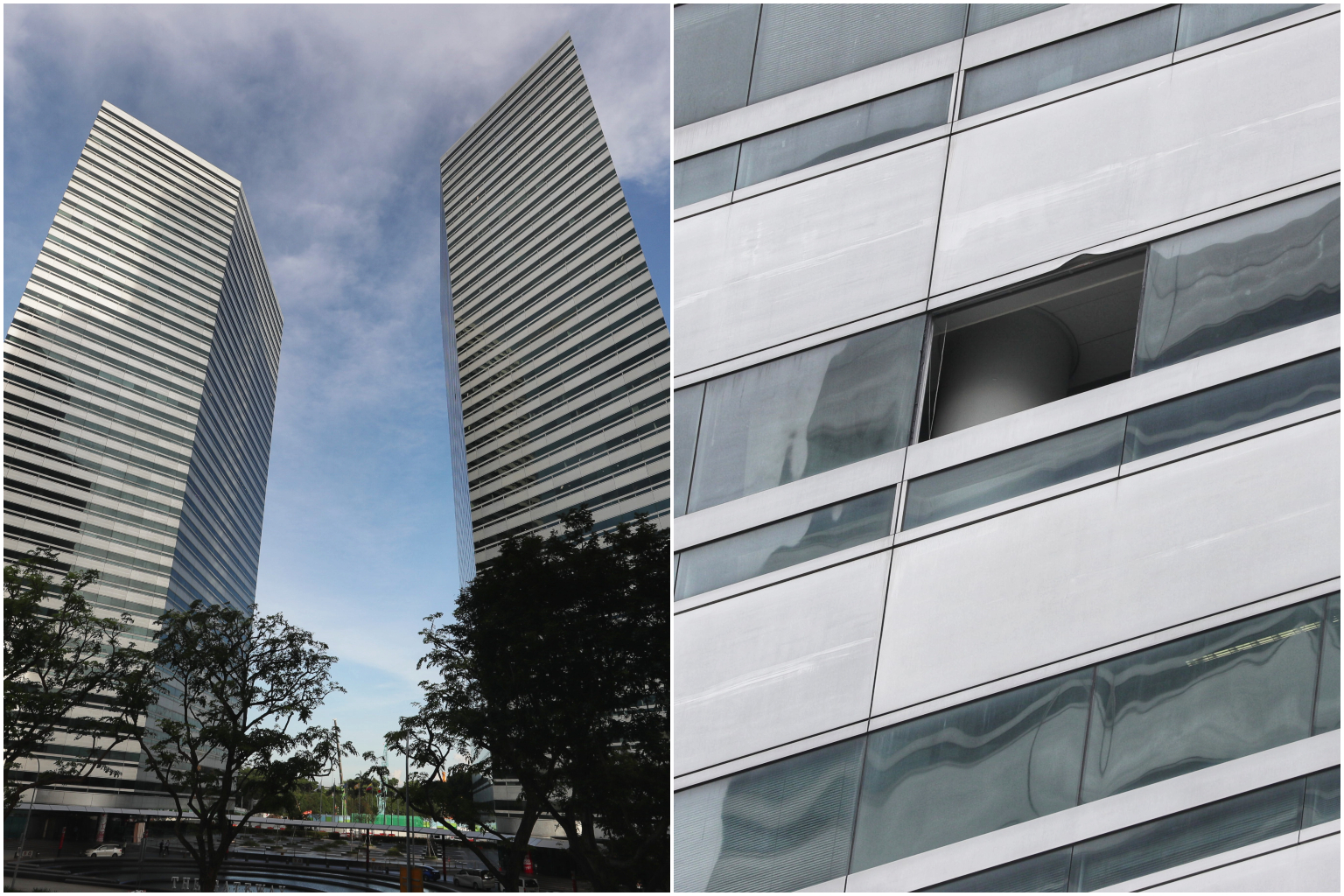 The extinguisher then crashed into the glass panes on the first storey of Gateway East, some 50m away from Gateway West.