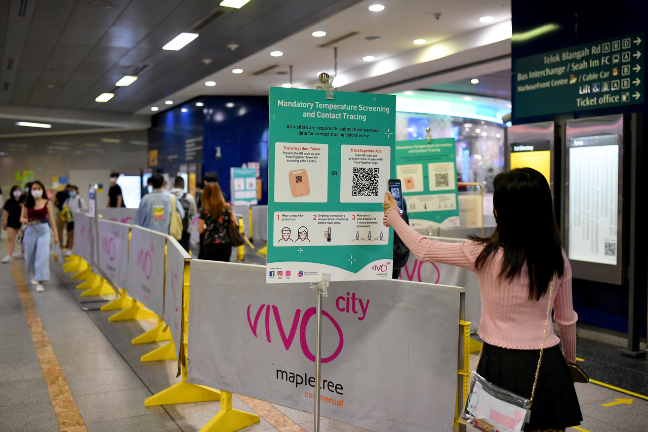 SafeEntry logs the places a person has visited via QR code scanning.