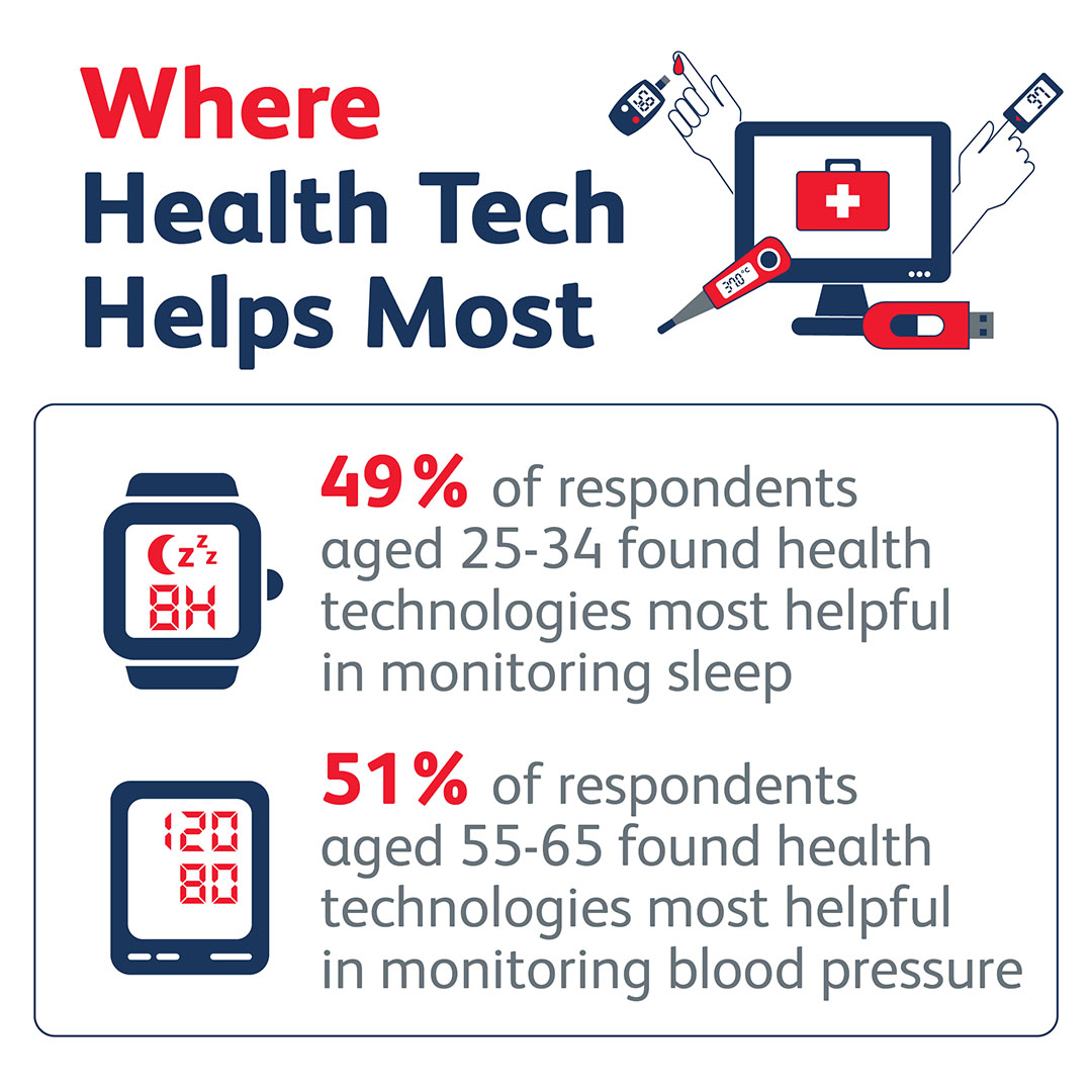 Priorities differed among different age groups, however. For 25-to-34-year-olds, monitoring sleep ranked number one when asked about the importance of using digital technologies, while those in the 55-65 group cited monitoring blood pressure.
