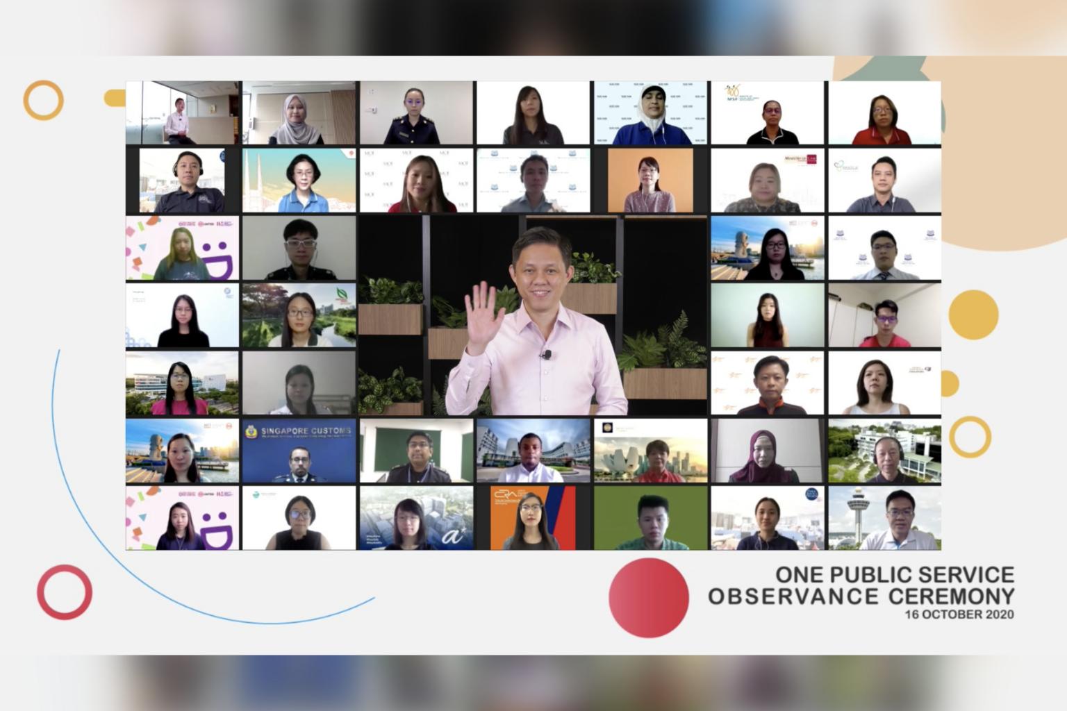 Minister-in-charge of the Public Service Chan Chun Sing during the One Public Service Observance Ceremony held virtually for the first time.