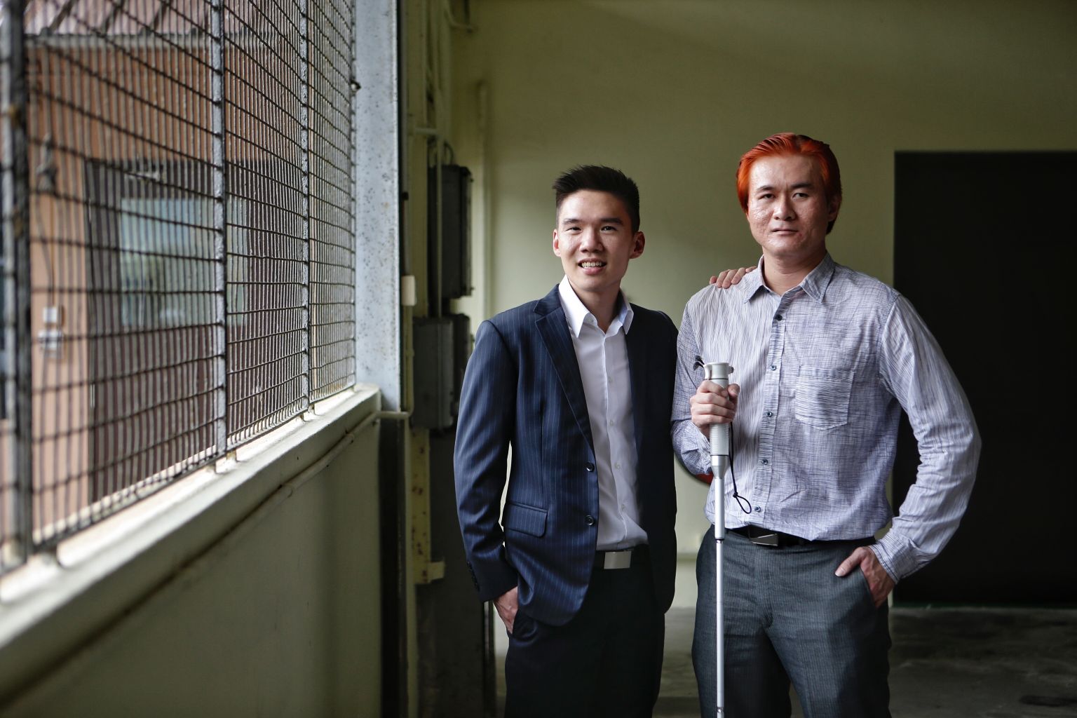Glow in the Dark founder Jared Sia (left) and para-athlete Steve Tee at the Singapore Association of the Visually Handicapped on Feb 21, 2018.