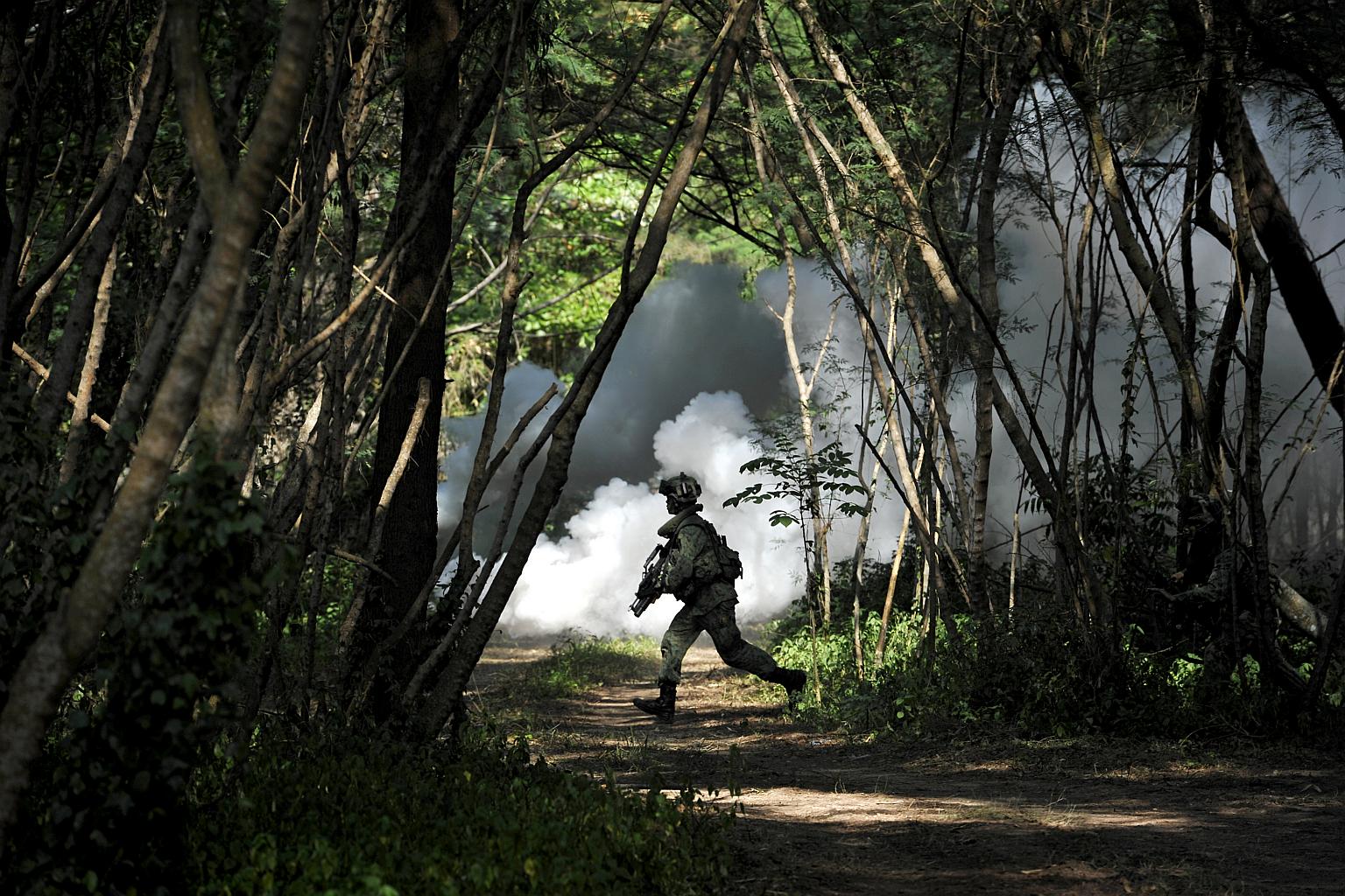 A soldier running with his weapon during the Singapore Armed Forces (SAF) Readiness Exercise held on Aug 2, 2011 at Pulau Sudong. The SAF will be conducting a range of military exercises from from 8am on June 29 to 8am on July 6.