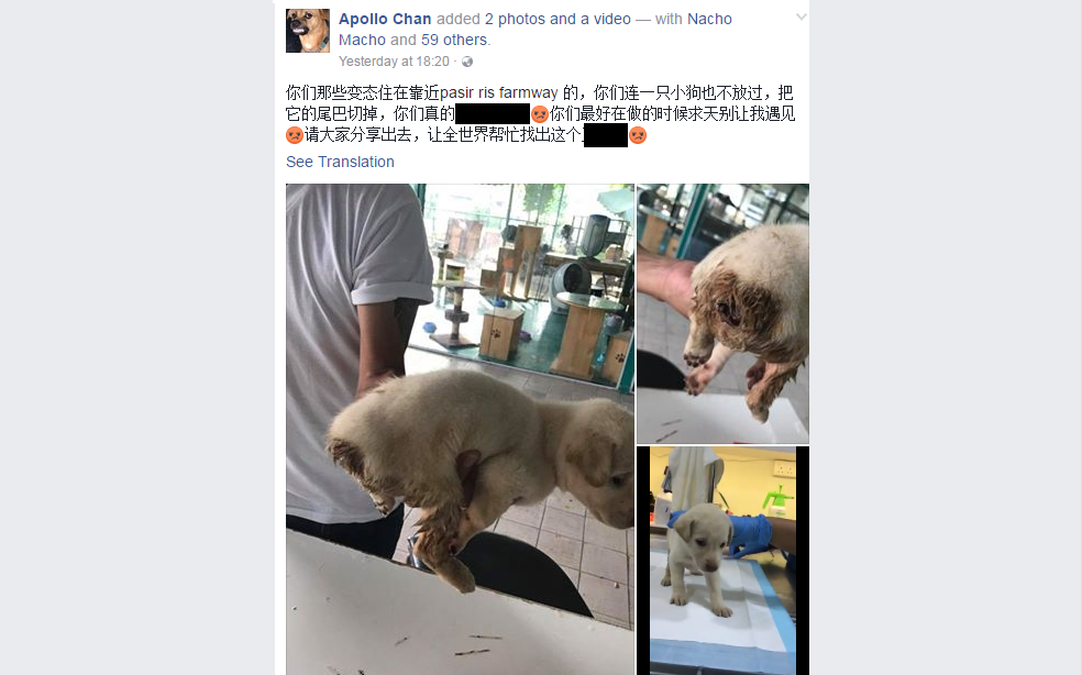 A puppy was found with what appeared to be its tail chopped off along Pasir Ris Farmway on Friday (April 21).