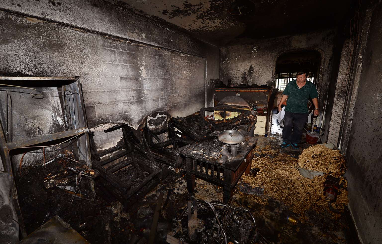 When TNP entered the flat at 11am after the blaze, we saw a sack of peanuts leaning against a wall in the living room. There were also peanuts strewn all over the room.