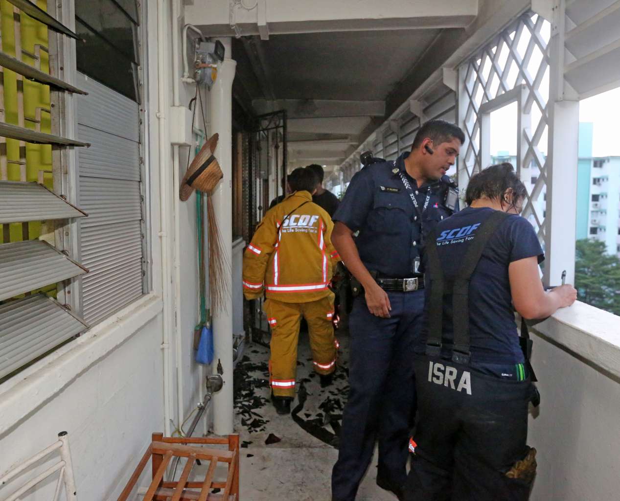 According to a Shin Min reporter on the scene in the aftermath of the fire, the ground outside the flat was covered with soot.