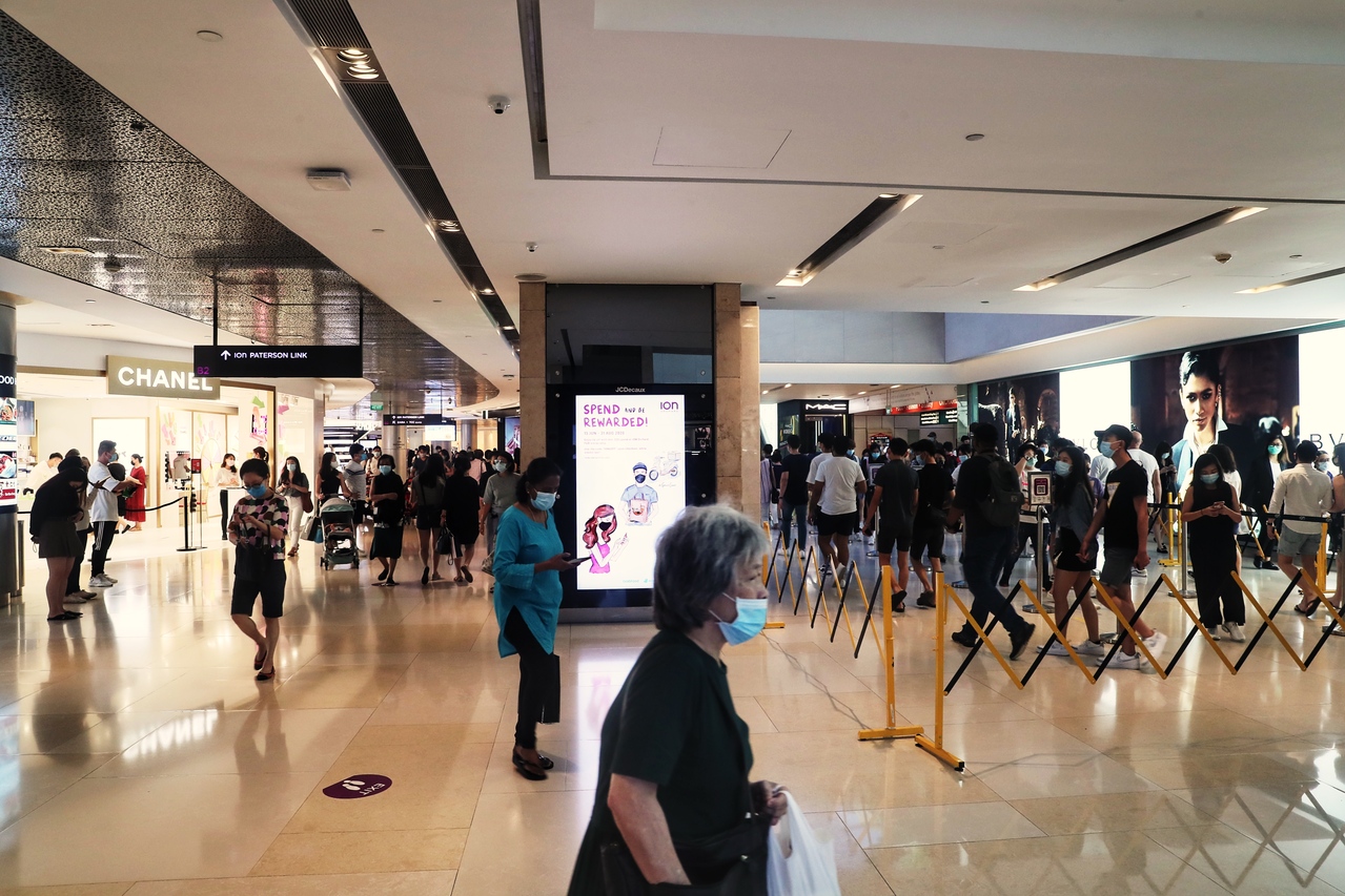 On Saturday (June 27), there were queues to enter malls such as Ion Orchard and 313 @ somerset; shoppers were seen lining up outside retail stores at Ion Orchard such as Daiso, Sephora, Crate & Barrel as well as Uniqlo, in the first weekend that the Japanese fashion retailer was open after the circuit breaker.