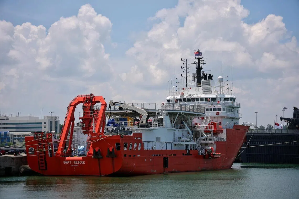 The Republic of Singapore Navy's MV Swift Rescue is seen during Exercise Pacific Reach 2025 at Changi Naval Base on Sept 18.