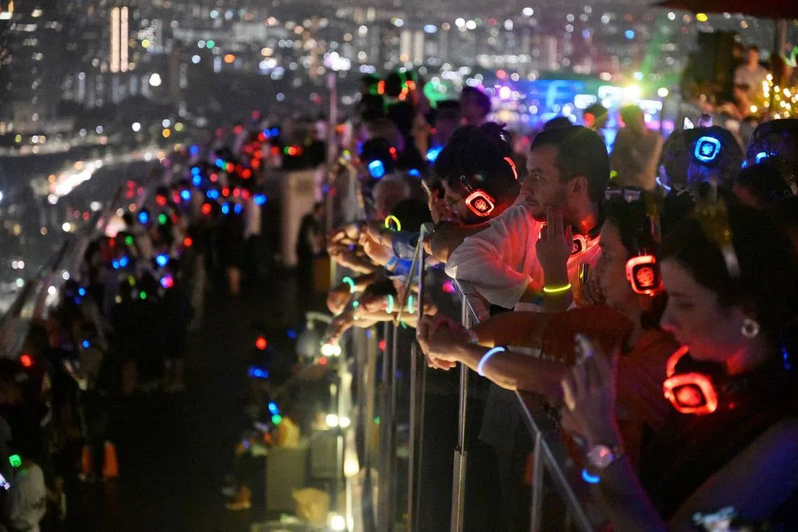 Crowds at Marina Bay Sands sky deck during the countdown to 2024.