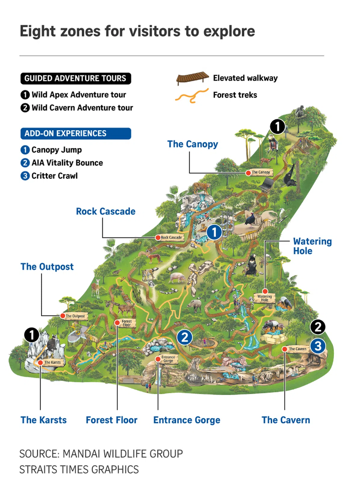 Rainforest Wild Asia in Mandai opens on March 12; visitors can opt for guided adventure tours