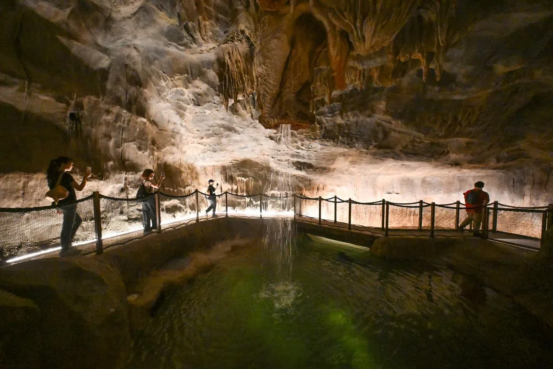 Visitors can explore cave chambers and rock formations in a cooler setting