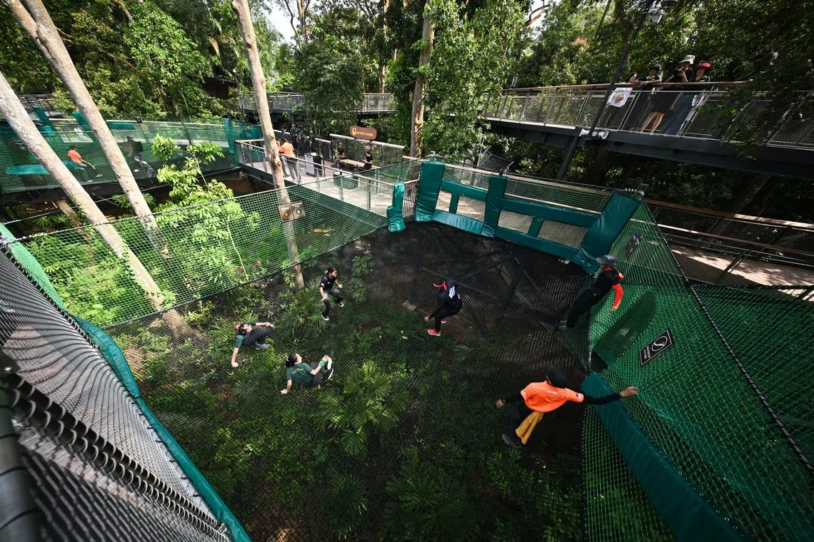 To spice things up, thrill seekers can pay an extra fee for three activities, such as the Canopy Jump, where visitors can step off a 13m or 20m platform for a simulated free fall, and the AIA Vitality Bounce, which has three open-sky bounce zones at least 3m above ground.