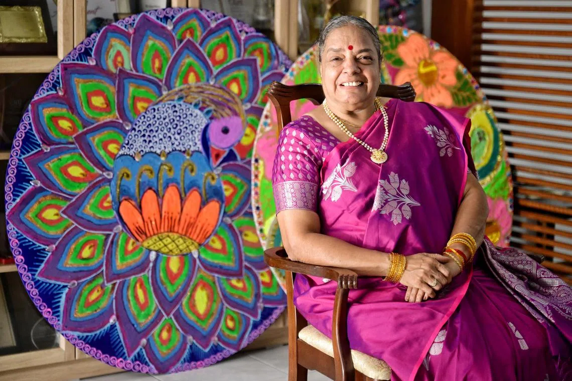 Rangoli is a 5,000-year-old form of Indian folk floor art. Madam Mohan first picked up the art form when she was five.