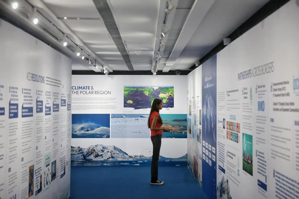 SINGAPORE – Photographs of snow-capped land marred with large patches of red and green algae due to rising surface temperatures are among some of the images and descriptions of the rapidly declining state of the Antarctic that are showcased at a new climate action exhibition.