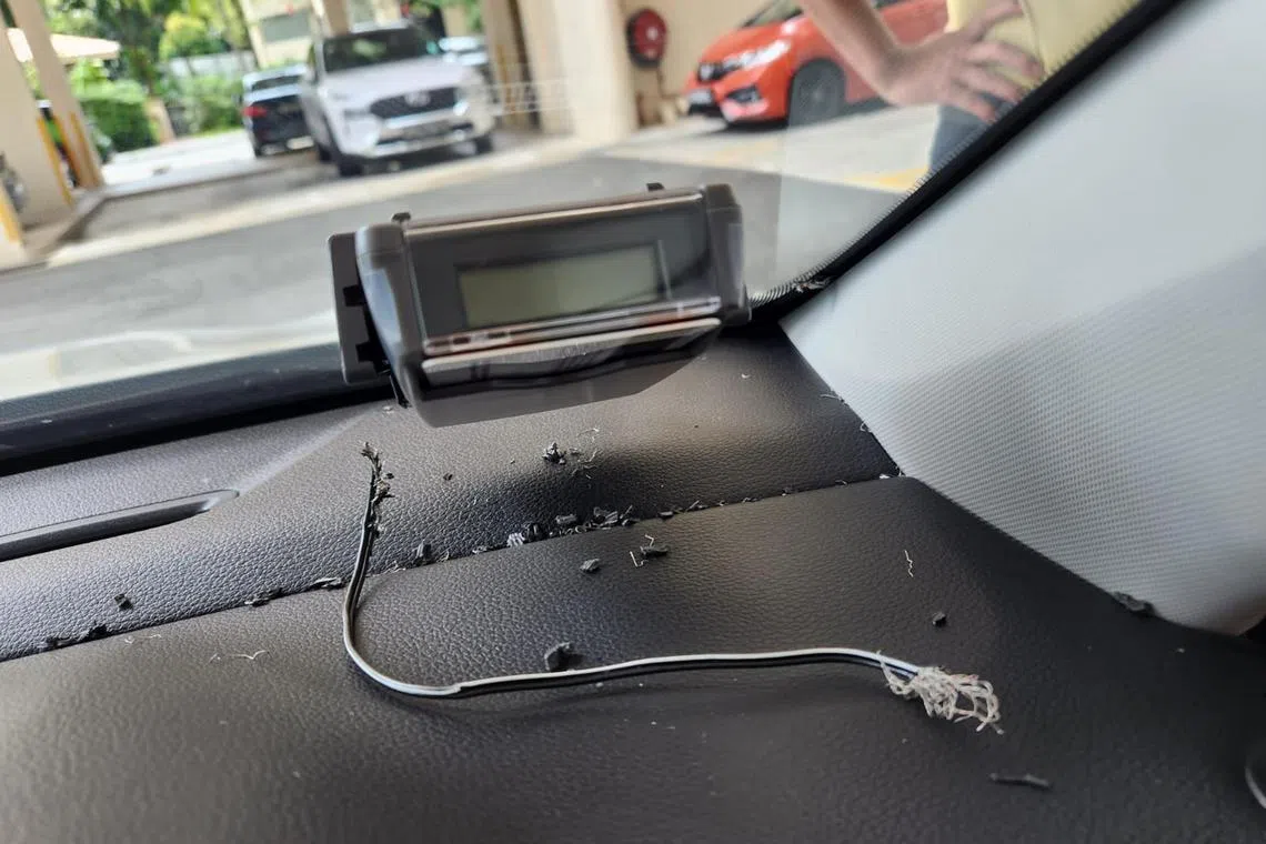 The 41-year-old billing analyst, who wanted to be known only as Ms Quek, discovered later that afternoon on Jan 6 that some of the wiring in the engine had been chewed through. She had to call a towing service to take the car to a workshop for repairs.