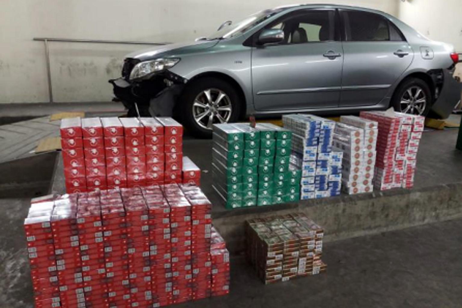 ICA officers discovered 180 cartons and 1,041 packets of duty-unpaid cigarettes in a car at Tuas Checkpoint on Sept 8, 2018.