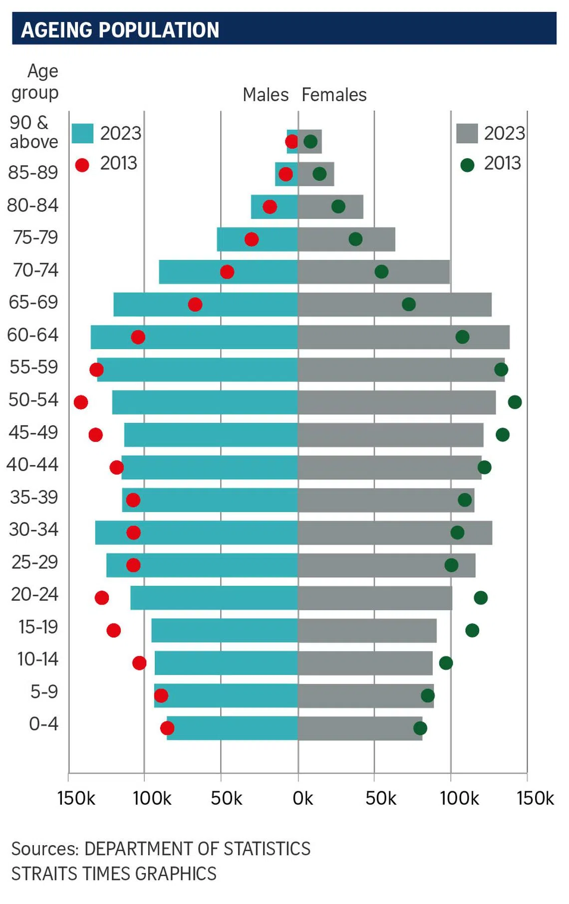 The proportion of citizens aged 65 and above is rising at a faster pace compared with the last decade. From 11.7 per cent in 2013, it spiked to 19.1 per cent in 2023, according to the Government’s annual Population in Brief report released on Friday. By 2030, around one in four citizens, or 24.1 per cent, will be aged 65 and above.