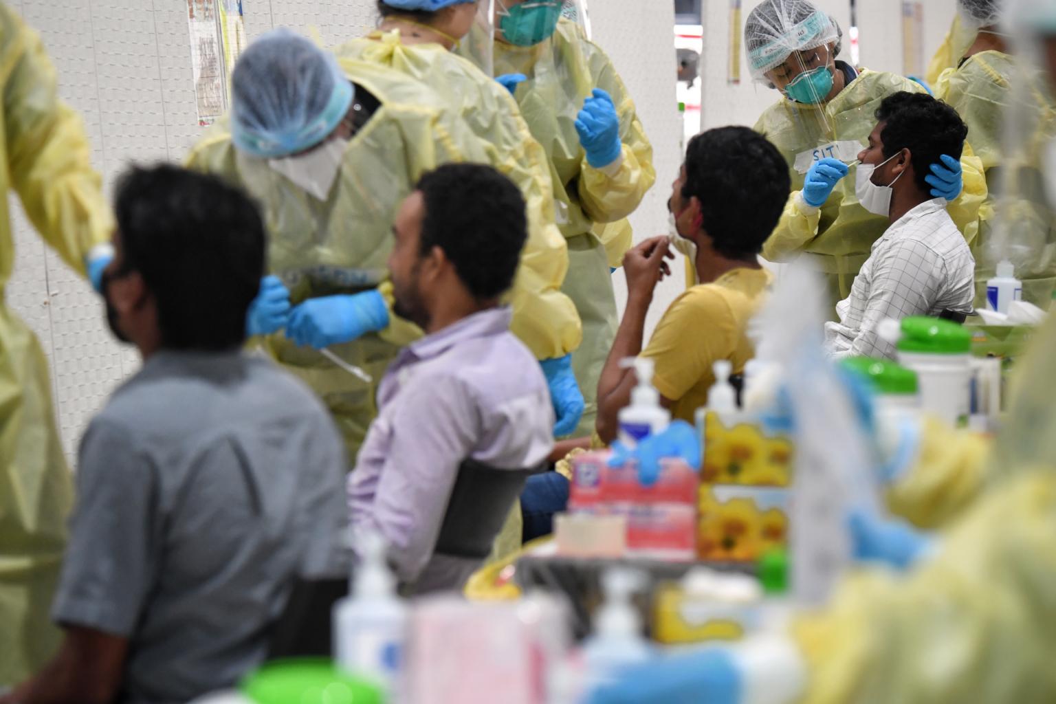 On Wednesday, MOM said movement restrictions or quarantines in dormitories might be imposed if a few workers there test positive for Covid-19.