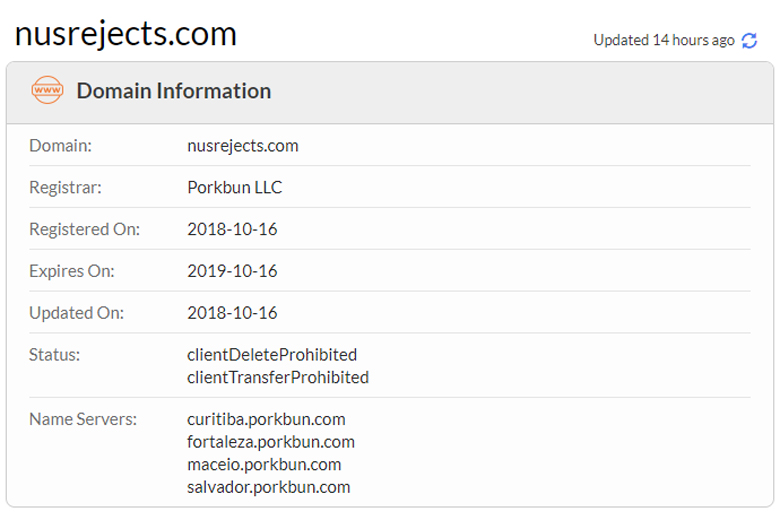 A search by ST found that the registrar of "nusrejects.com" is Porkbun, a domain management company based in Portland, Oregon. However, the name of the registrant is private.
