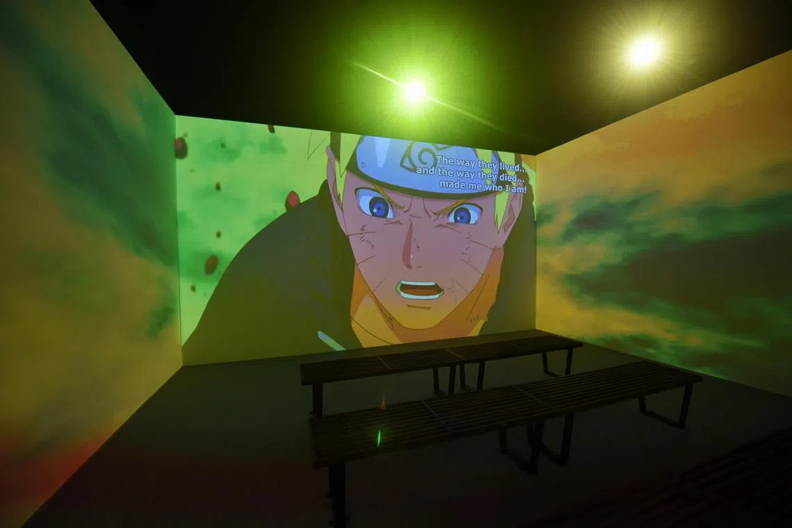 The final section is an immersive multi-screen mini-theatre, with projections on all four walls showing the final battle against a godlike villain, before Naruto himself settles the score with his childhood rival and best friend, Uchiha Sasuke.