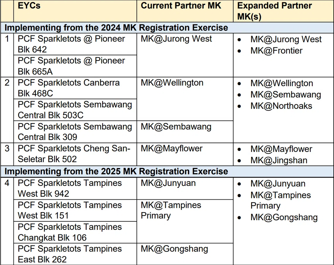 An additional expanded partnership cluster in Tampines will be implemented from the 2025 registration exercise.
