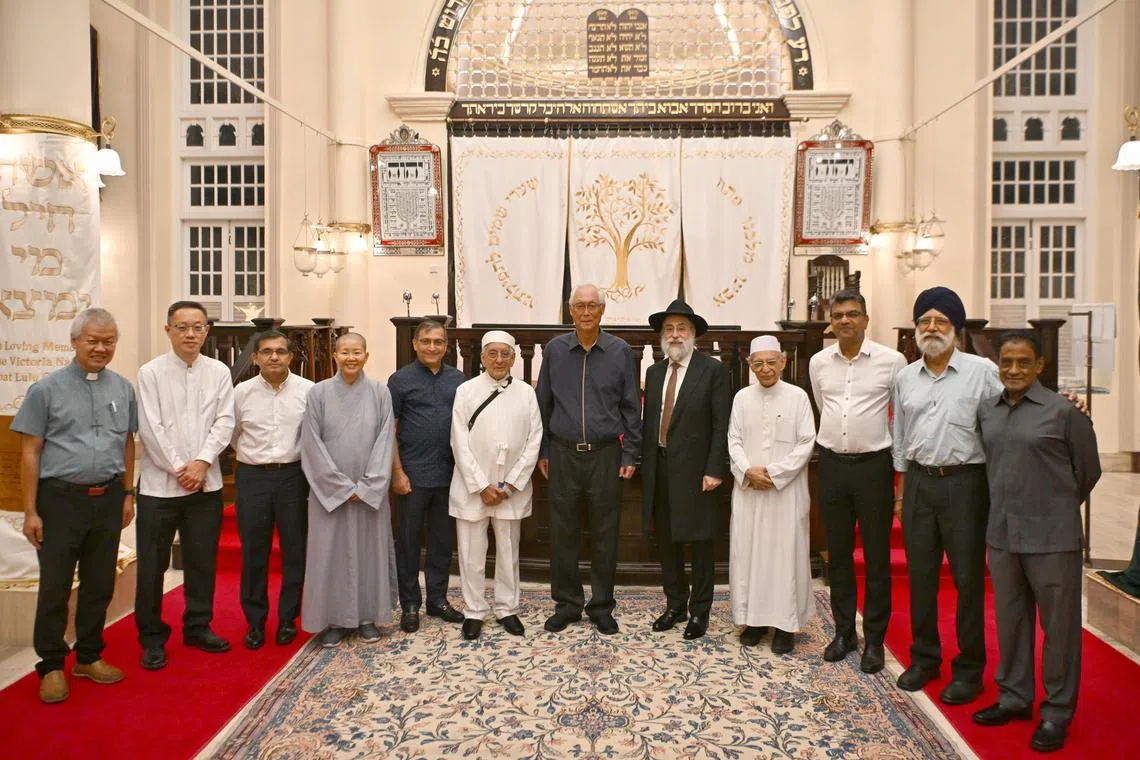 Emeritus Senior Minister Goh Chok Tong with religious leaders at the Maghain Aboth Synagogue.