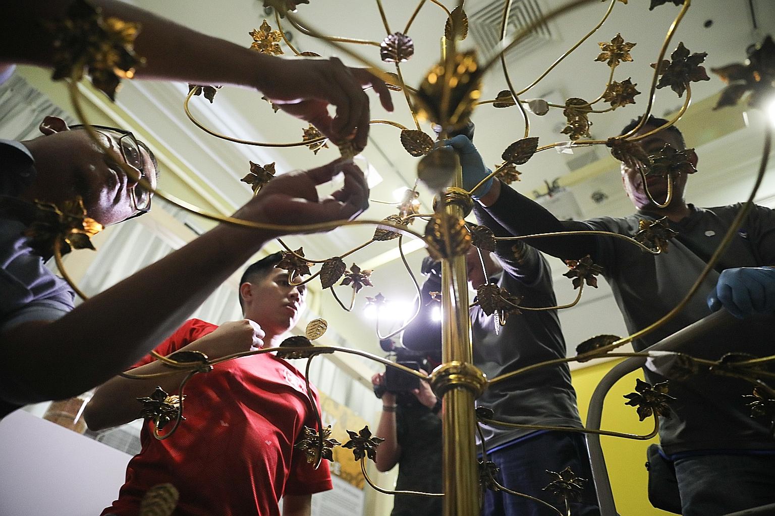 The bunga emas (golden flowers) sculpture being moved for display in the Malay Heritage Centre. The centre said this is the only bunga emas in Malaysia, and it is the first time since 1968 that it has left Kedah State Museum.