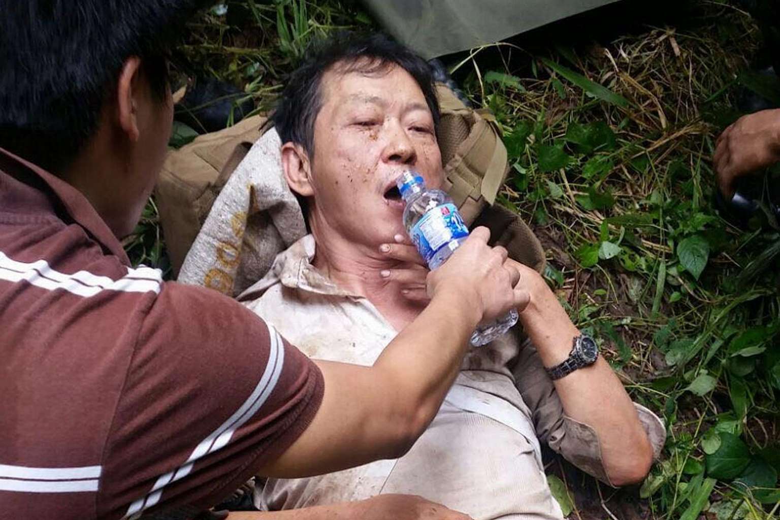 When Mr Low was brought out of the forest on a stretcher, he raised his hand to wave at his relatives.