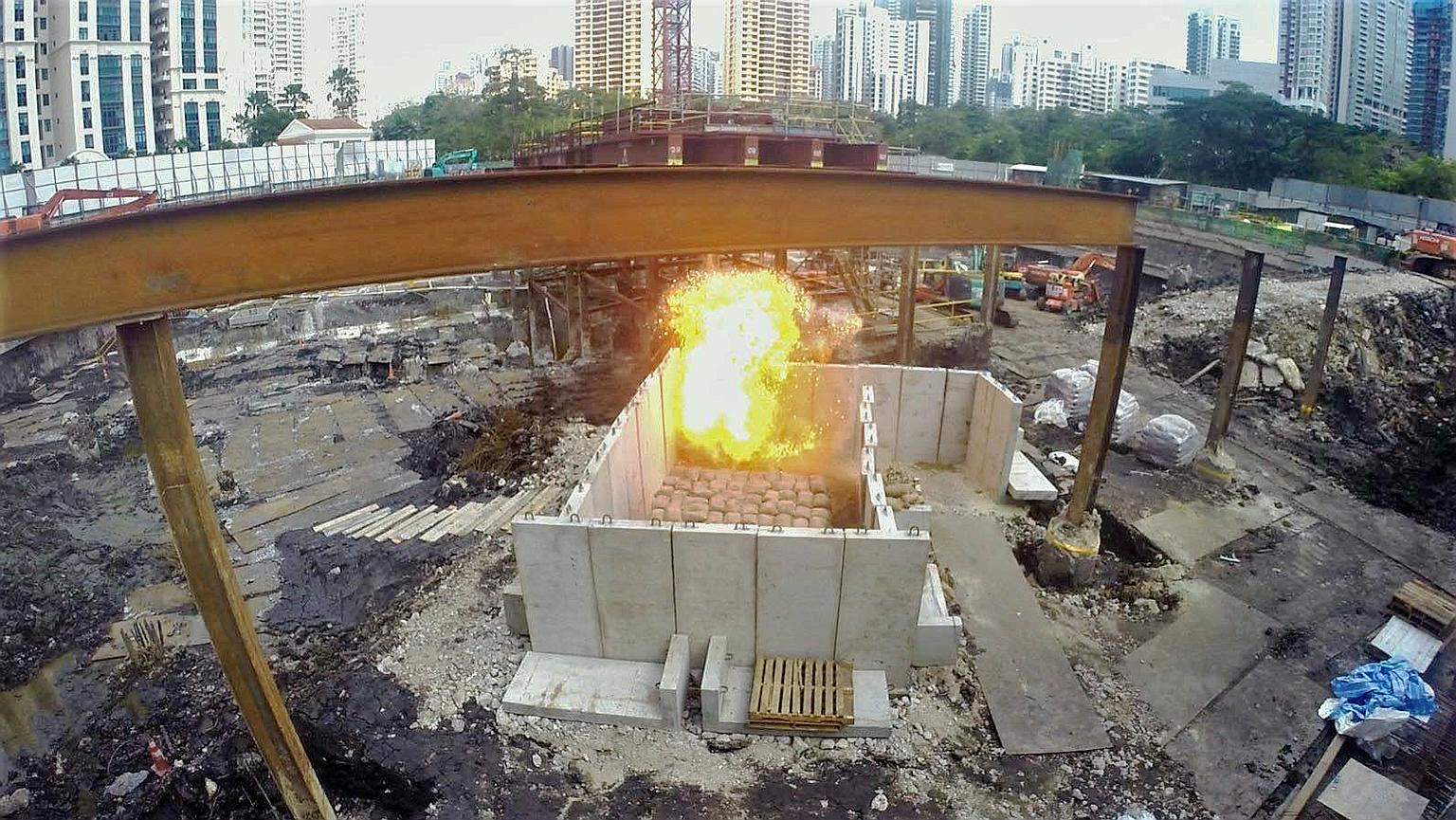 Residents told to stay away as WWII bomb is detonated: More than 600 homes had to be vacated for 11 hours yesterday and nearby roads were closed to detonate a World War II aerial bomb. The 50kg bomb, discovered at a construction site in Jiak Kim Street, was deemed unsafe to be moved and had to be detonated on-site. The bomb was placed into a large trench in the ground, along with sandbags, and concrete blocks were erected around it to control the effects of the explosions. The first explosion was heard at 11am. The bomb was successfully disposed of at about 4.35pm, police said. PHOTO: SINGAPORE ARMY