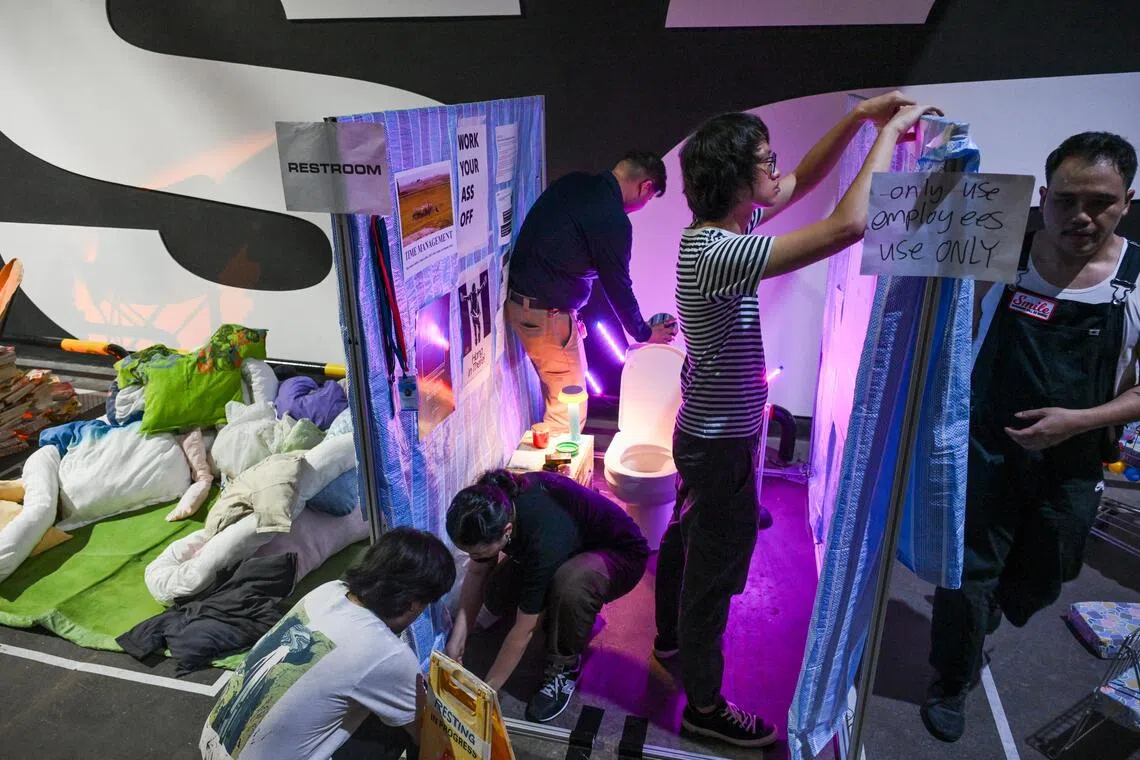 Team Jaga Design, led by Edwin Fong, 29, an industrial designer, created a restroom with a toilet bowl, a side table with a lamp, and “relaxing” posters about resting at work as well as those with funny memes.