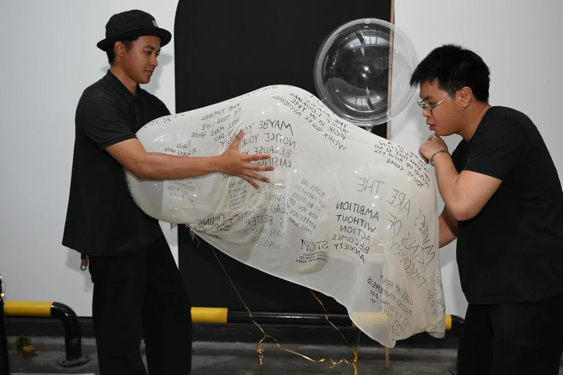 Mr Raihan Syahmi, 26, and Mr Timothy Ho, 27, preparing their space called Head In The Clouds.