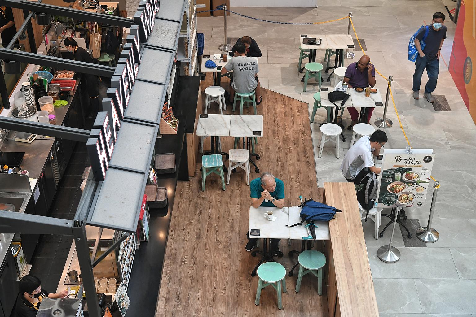 Patrons at the Heavenly Wang outlet in AMK Hub on May 14, 2021. Dining-in will be allowed from June 21, but capped at two people per table.