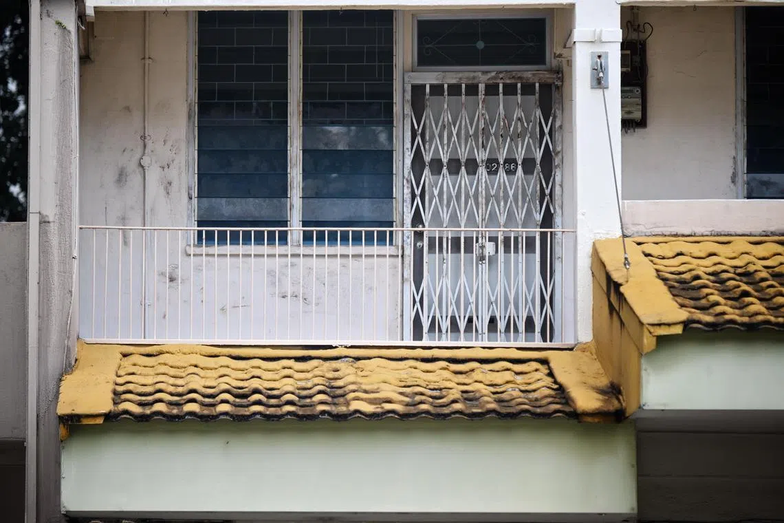 A metal shutter and louvred windows that possibly date back to the 1960s in an old HDB block in East Coast Road.
