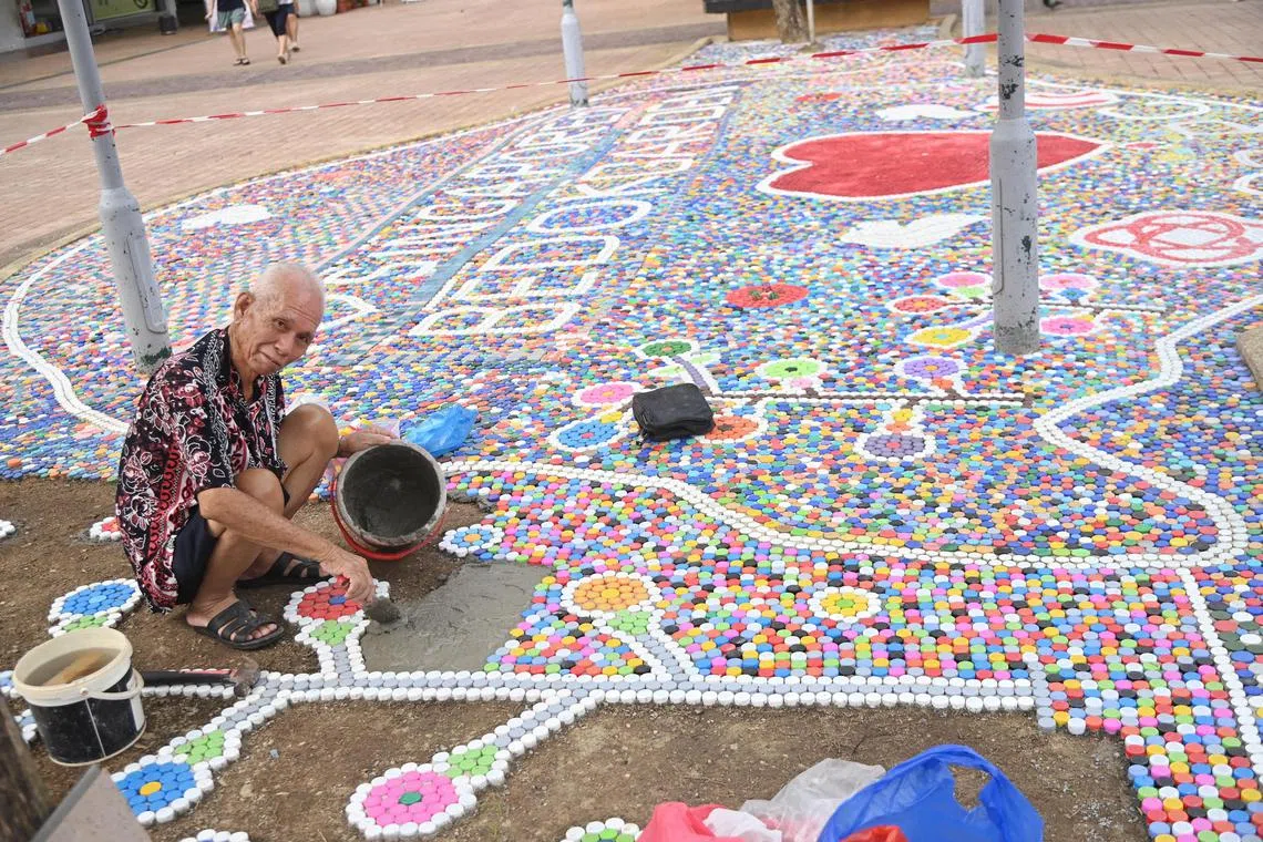 Retiree, 77, turns heads with community work of art using 80,000 bottle caps in Bedok