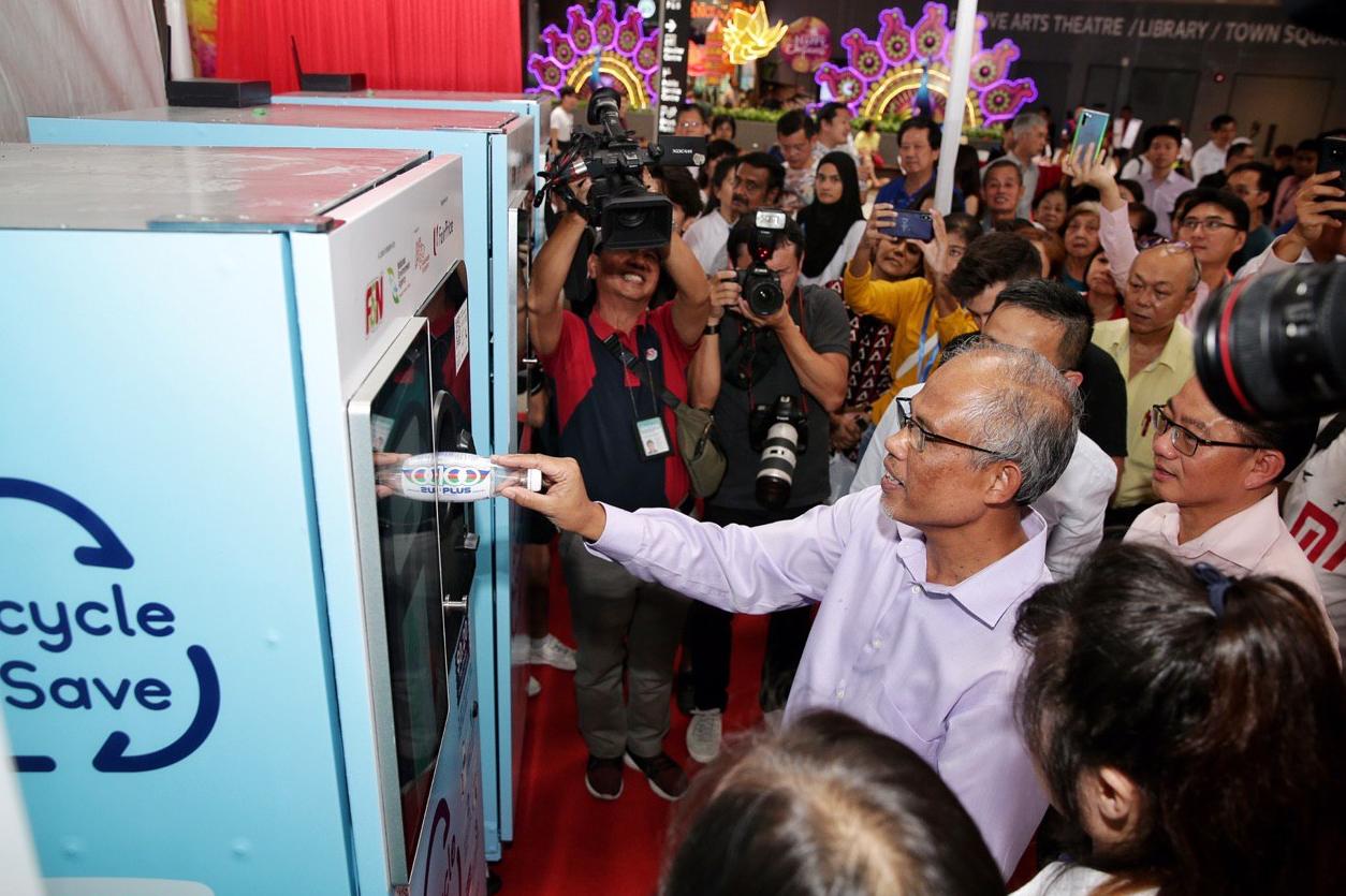 The Recycle N Save initiative by the NEA and drinks manufacturer Fraser & Neave (F&N) was launched yesterday following favourable response from the public to the pilot initiative at Waterway Point in Punggol in January last year.